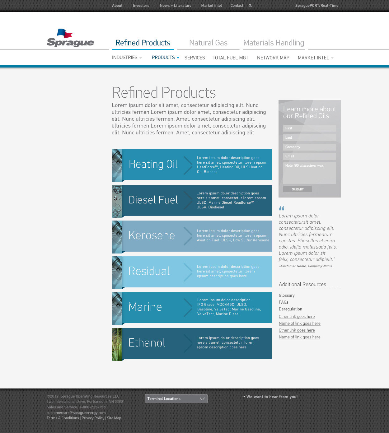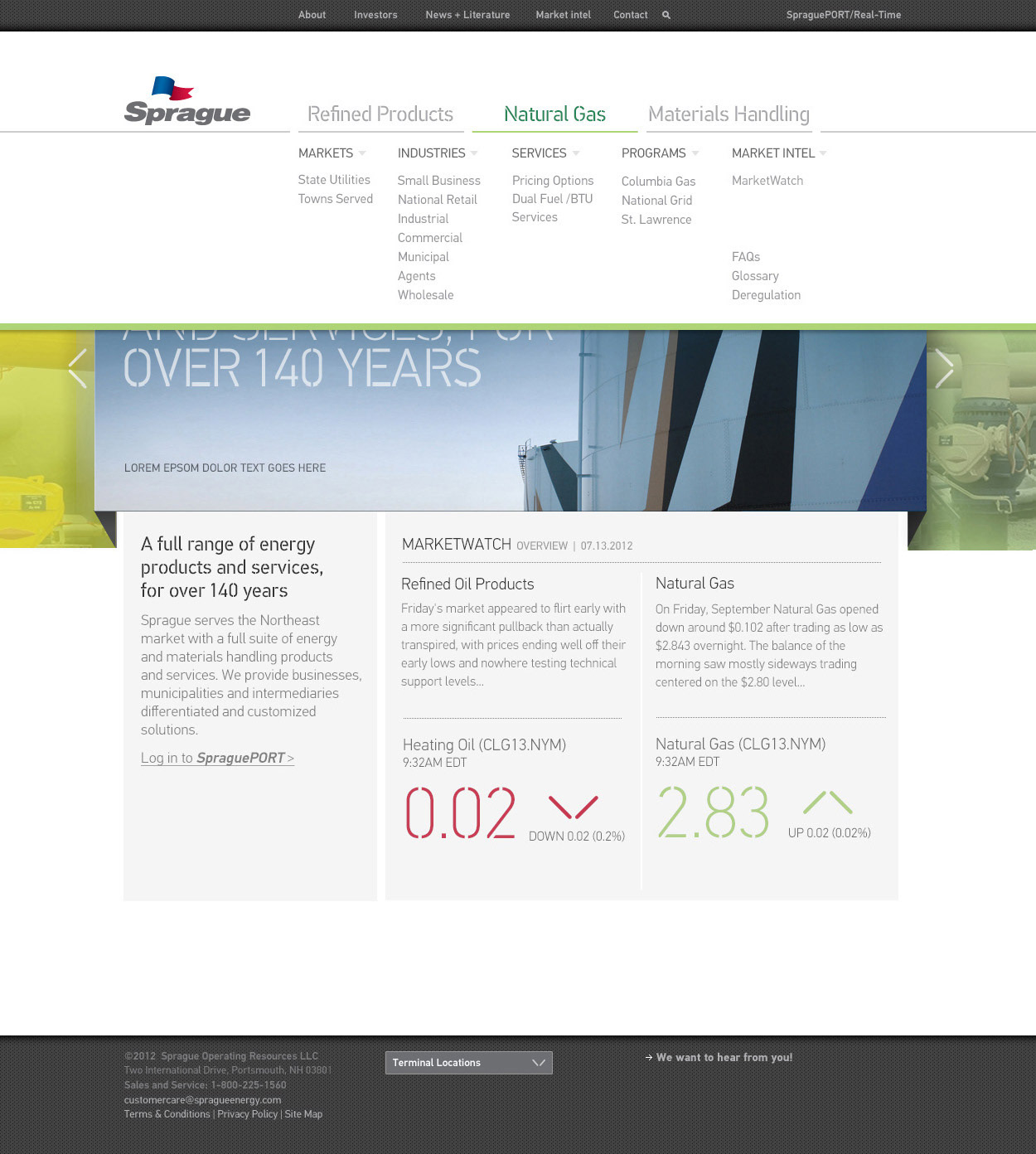 Sprague is a 142 year-old energy company based in Portsmouth, NH. Founded in the 19th century with whale oil and coal, the company never ceased to evolve and innovate within the energy industry. In collaboration with NYC-based design studio Ultravirgo Creative, I worked as UI / Visual Designer to develop a new look and feel for Sprague's website redesign, encompassing the company's innovation, stability and progress in the modern day.